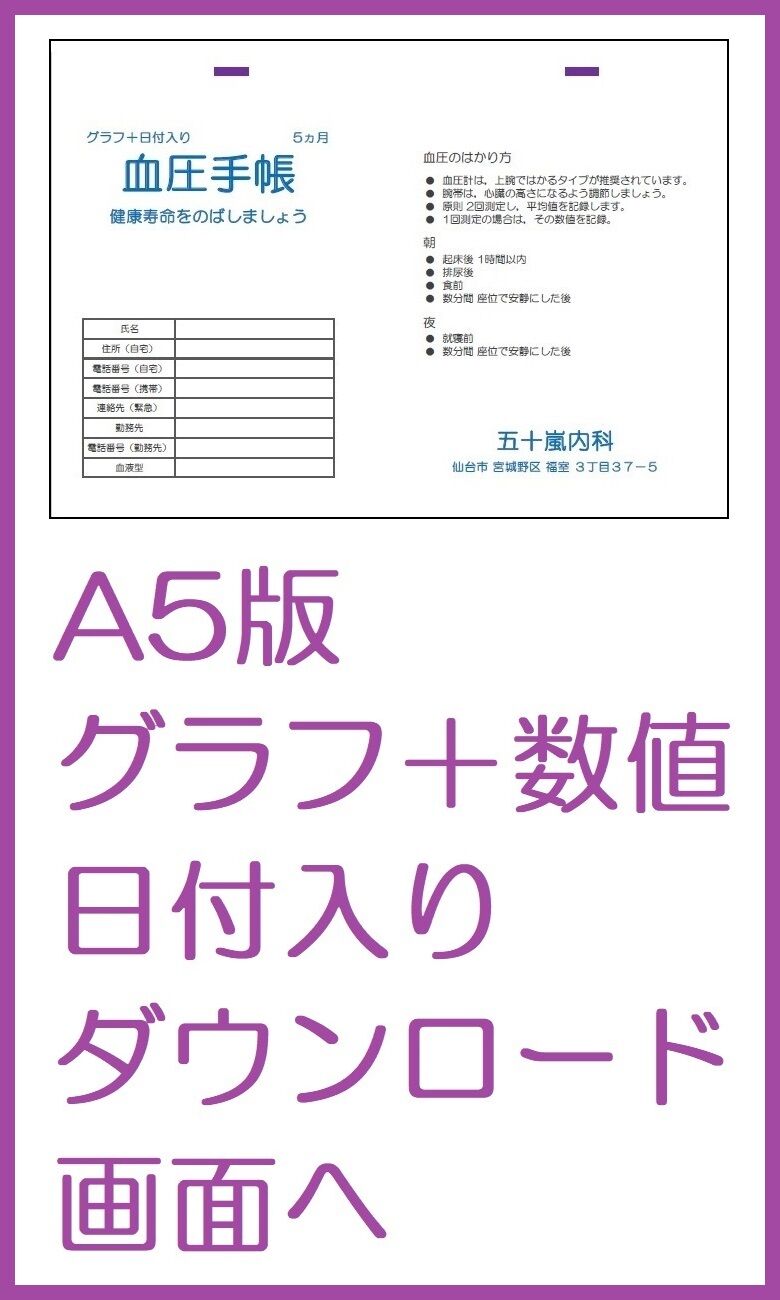 当クリニックオリジナル (手作り) 血圧手帳(無料ダウンロード画面)は
